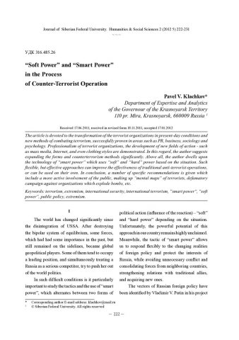 "Soft Power" and "Smart Power" in the Process of Counter-Terrorist Operationстатья из журнала