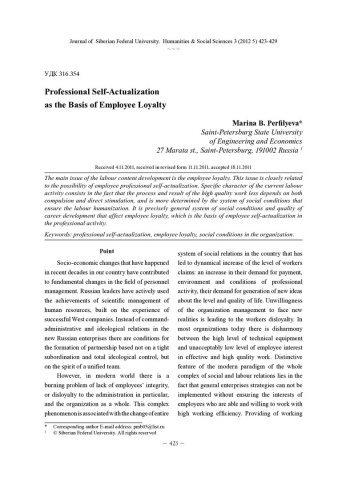 Professional Self-Actualization as the Basis of Employee Loyaltyстатья из журнала