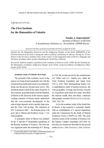 The First Institute for the Humanities of Yakutiaстатья из журнала