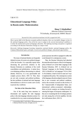 Educational Language Policy in Russia under Modernizationстатья из журнала