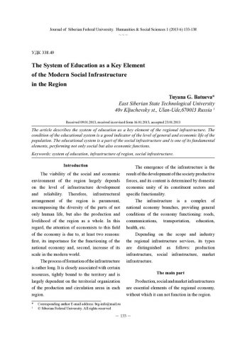 The System of Education as a Key Element of the Modern Social Infrastructureстатья из журнала