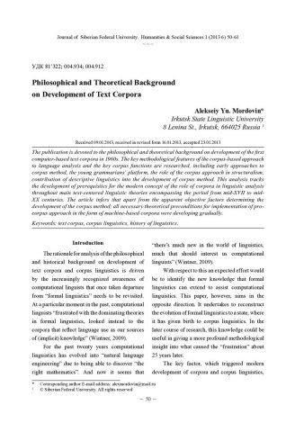 Philosophical and Theoretical Background on Development of Text Corporaстатья из журнала