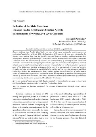 Reflection of the Main Directions Didaskal Feodor Krest’ianin’s Creative Activity in Monuments of Writing XVI–XVII Centuriesстатья из журнала