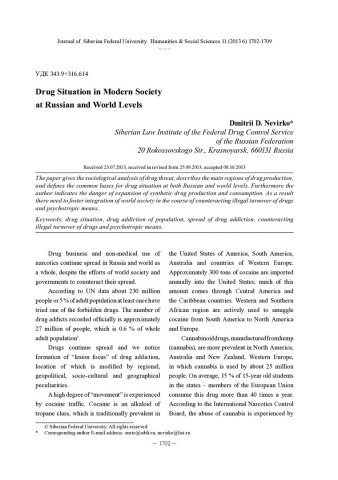 Drug Situation in Modern Society at Russian and World Levelsстатья из журнала