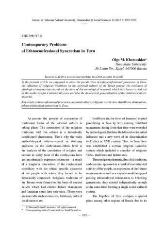 Contemporary Problems of Ethnoconfessional Syncretism in Tuvaстатья из журнала