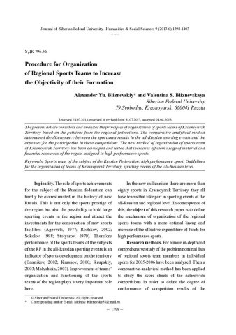 Procedure for Organization of Regional Sports Teams to Increase the Objectivity of their Formationстатья из журнала