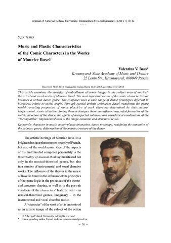Music and Plastic Characteristics of the Comic Characters in the Works of Maurice Ravelстатья из журнала