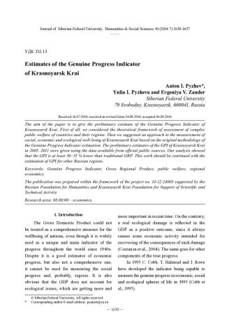 Estimates of the Genuine Progress Indicator of Krasnoyarsk Kraiстатья из журнала