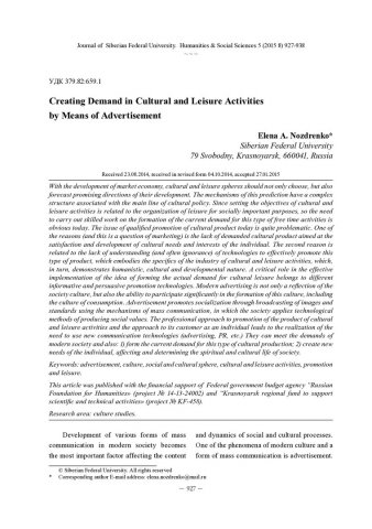 Creating Demand in Cultural and Leisure Activities by Means of Advertisementстатья из журнала