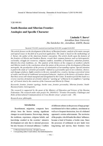 South-Russian and Siberian Frontier: Analogies and Specific Characterстатья из журнала