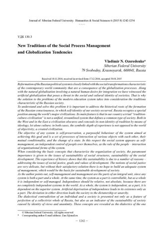 Библиографическое описание:Ozeredenko, Vladimir. New Traditions of the Social Process Management and Globalization Tendencies = Новые традиции управления общественными процессами и глобализационные тенденции / V. N. Ozeredenko. - Текст : непосредственный // Журнал Сибирского федерального университета. Гуманитарные науки. - 2015. - Т. 8, № 6. - С. 1242-1254. - Библиогр.: с. 1251-1253 (39 назв.). - ISSN 1997-1370.