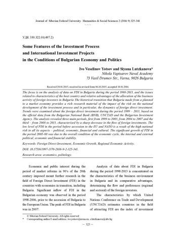 Библиографическое описание:Veselinov, Yotsov Ivo. Some Features of the Investment Process and International Investment Projects in the Conditions of Bulgarian Economy and Politics = Некоторые особенности инвестиционного процесса и международные инвестиционные проекты в условиях болгарской экономики и политики / Ivo Veselinov Yotsov, S. Lutzkanova. - Текст : непосредственный // Журнал Сибирского федерального университета. Гуманитарные науки. - 2016. - Т. 9, № 2. - С. 325-341. - Библиогр.: с. 340-341. - ISSN 1997-1370.