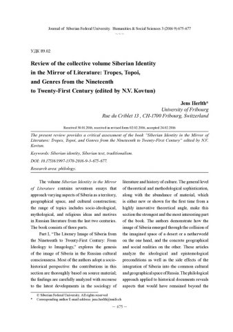 Review of the collective volume Siberian Identity in the Mirror of Literature: Tropes, Topoi, and Genres from the Nineteenth to Twenty-First Century (edited by N.V. Kovtun)
