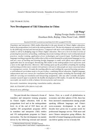 New Development of T and I Education in Chinaстатья из журнала