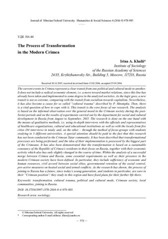 The process of Transformation in the Modern Crimeaстатья из журнала
