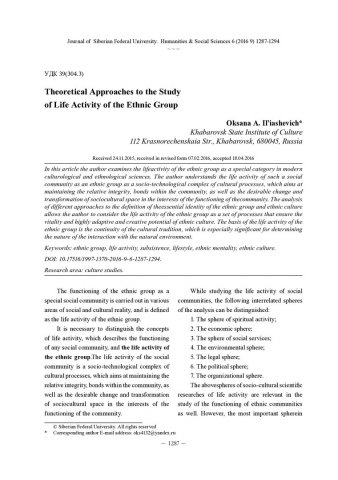 Theoretical Approaches to the Study of Life Activity of the Ethnic Groupстатья из журнала