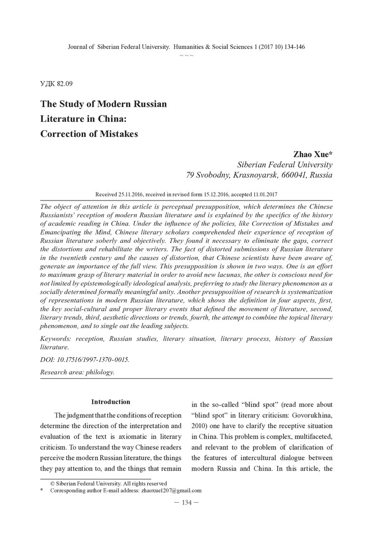 Библиографическое описание:Zhao Xue. The Study of Modern Russian Literature in China: Correction of Mistakes / Zhao Xue = Изучение современной русской литературы в Китае: "работа над ошибками". - Текст : непосредственный // Журнал Сибирского федерального университета. Гуманитарные науки. - 2017. - Т. 10, № 1. -С. 134-146. - Библиогр.: с. 144-146. - ISSN 1997-1370.