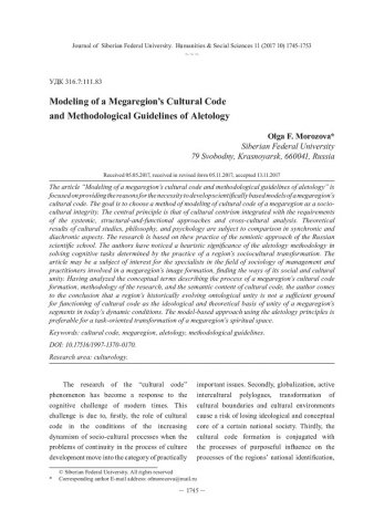 Библиографическое описание:Morozova, Olga. Modeling of a Megaregion`s Cultural Code and Methodological Guidelines of Aletology = Моделирование культурного кода мегарегиона и методологические установки алетологии / O. F. Morozova. - Текст : непосредственный // Журнал Сибирского федерального университета. Гуманитарные науки. - 2017. - Т. 10, № 11. - С. 1745-1753. - Библиогр.: с. 1752-1753. - ISSN 1997-1370.