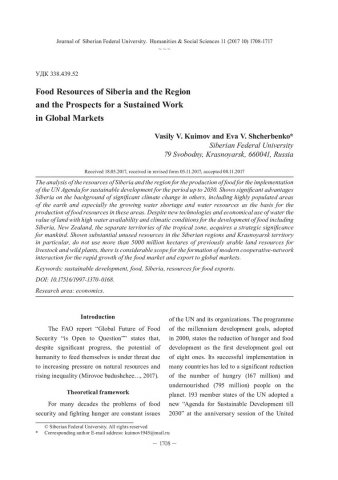 Библиографическое описание:Kuimov, Vasily. Food Resources of Siberia and the Region and the Prospects for a Sustained Work in Global Markets = Продовольственные ресурсы Сибири и региона и перспективы устойчивой работы на глобальных рынках / V. V. Kuimov, E. V. Shcherbenko. - Текст : непосредственный // Журнал Сибирского федерального университета. Гуманитарные науки. - 2017. - Т. 10, № 11. - С. 1708-1717. - Библиогр.: с. 1716-1717. - ISSN 1997-1370.