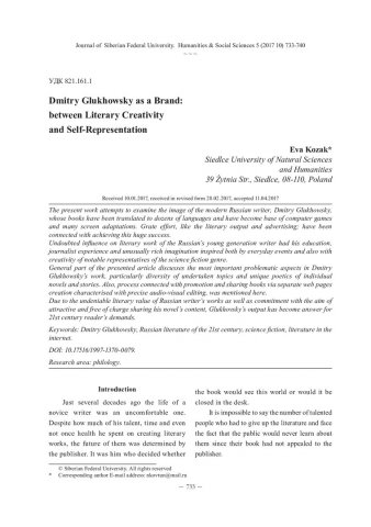 Dmitry Glukhowsky as a Brand: between Literary Creativity and Self-Representation