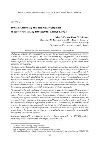 Библиографическое описание:Tools for Assessing Sustainable Development of Territories Taking into Account Cluster Effects = Инструменты оценки устойчивости развития территорий с учетом кластерных эффектов / I. S. Ferova, E. V. Lobkova. - Текст : непосредственный // Журнал Сибирского федерального университета. Гуманитарные науки. - 2019. - Т. 12, № 4. - С. 600–626. - Библиогр.: с. 618-626. - ISSN 1997-1370.