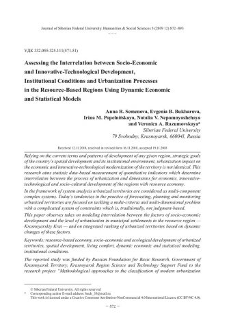 Assessing the Interrelation between Socio-Economic and Innovative-Technological Development, Institutional Conditions and Urbanization Processes in the Resource-Based Regions Using Dynamic Economic and Statistical Models