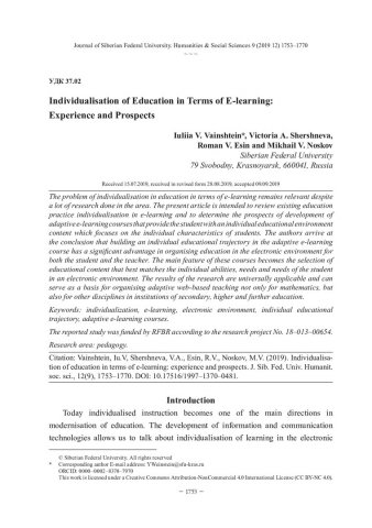 Библиографическое описание:Individualisation of Education in Terms of E-learning: Experience and Prospects = Индивидуализация образования в условиях электронного обучения: опыт и перспективы / Iu. V. Vainshtein. - Текст : непосредственный // Журнал Сибирского федерального университета. Гуманитарные науки. - 2019. - Т. 12, № 9. - С. 1753-1770. - Библиогр.: с. 1766-1770. - ISSN 1997-1370.