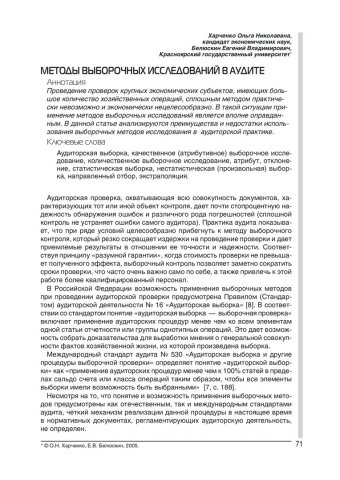 Библиографическое описание:Харченко, Ольга Николаевна. Методы выборочных исследований в аудите / О. Н. Харченко, Е. В. Белюскин. - Текст : электронный // Экономические проблемы и решения. - 2005. - № 4. - С. 71-80. - Библиогр. в конце ст. - ISSN 1811-7880.