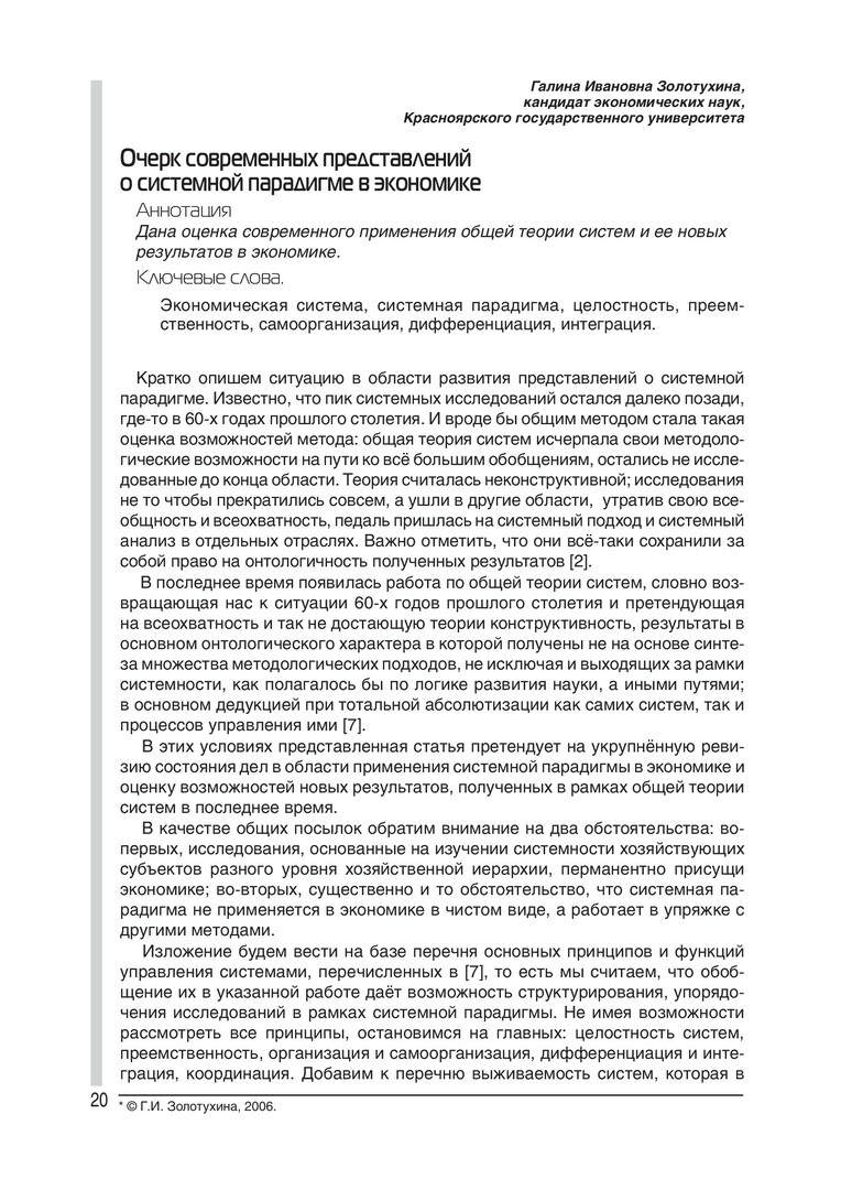 Библиографическое описание:Золотухина, Галина Ивановна. Очерк современных представлений о системной парадигме в экономике / Г. И. Золотухина. - Текст : электронный // Экономические проблемы и решения. - 2006. - № 5. - С. 20-28. - Библиогр. в конце ст. - ISSN 1811-7880.
