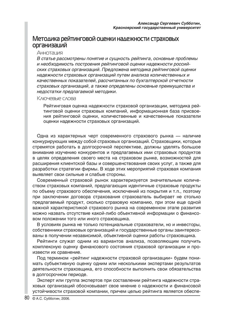 Библиографическое описание:Субботин, Александр Сергеевич. Методика рейтинговой оценки надежности страховых организаций / А. С. Субботин. - Текст : электронный // Экономические проблемы и решения. - 2006. - № 6. - С. 80-88. - Библиогр. в конце ст. - ISSN 1811-7880.