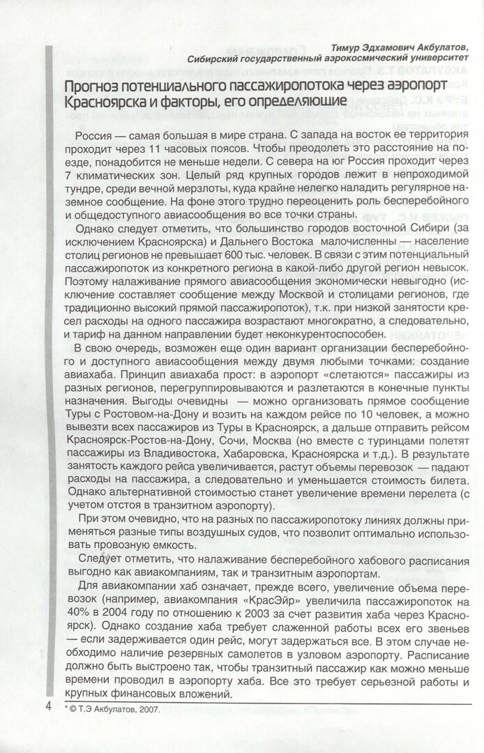 Библиографическое описание:Акбулатов, Тимур Эдхамович. Прогноз потенциального пассажиропотока через аэропорт Красноярска и факторы, его определяющие / Т. Э. Акбулатов. - Текст : электронный // Экономические проблемы и решения. - 2007. - № 7. - С. 4-8. - ISSN 1811-7880.