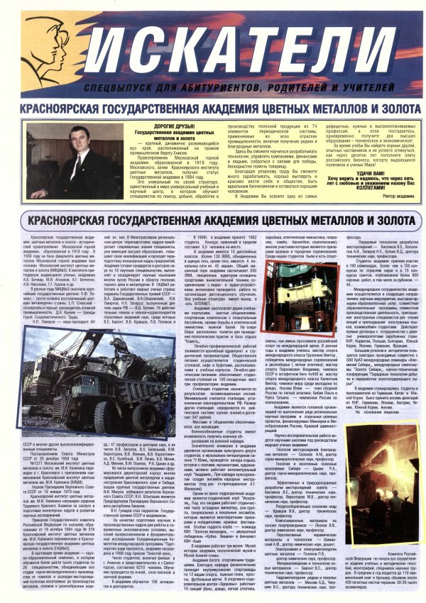 - Красноярская государственная академия цветных металлов и золота : [история образования академии : академия сегодня : фото к статье]. — С. 1.