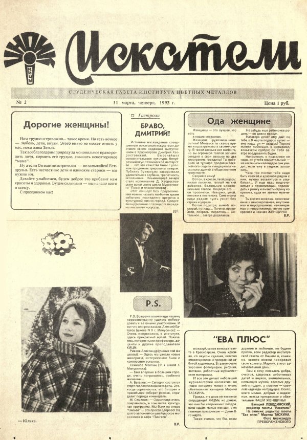 Искатели : газета. 1993 г. № 2 (11 марта)выпуск журнала/газеты
