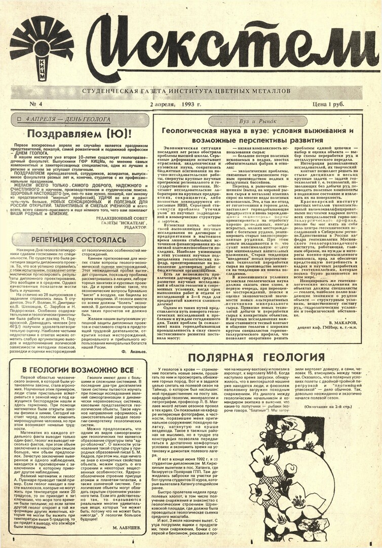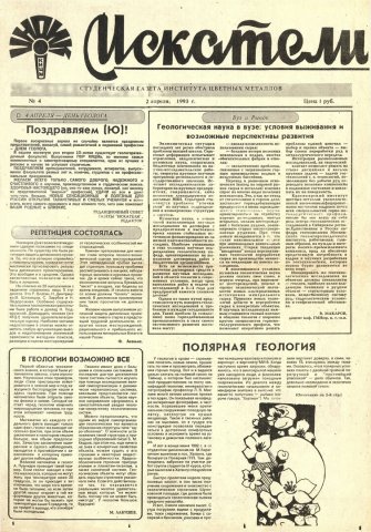 Искатели : газета. 1993 г. № 4 (2 апреля)выпуск журнала/газеты