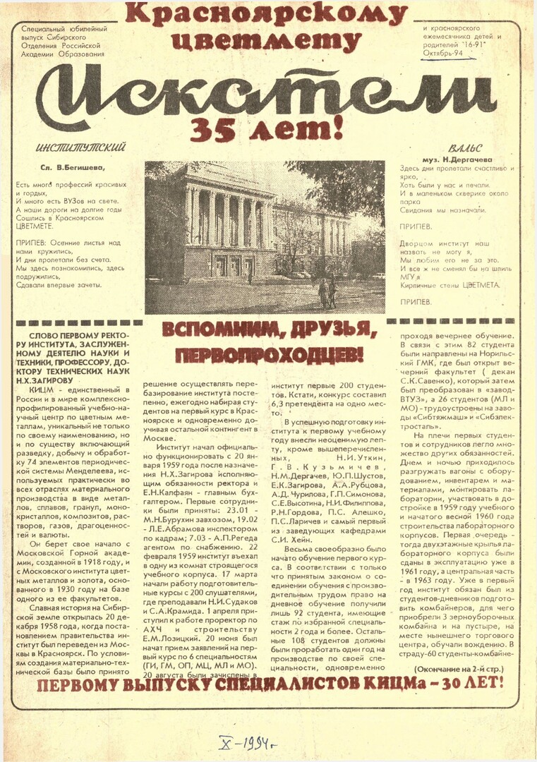 - Приказ № 992 от 02.10.94 : [О переименовании Красноярского института цветных металлов в Красноярскую государственную академию цветных металлов и золота]. — С. 16.