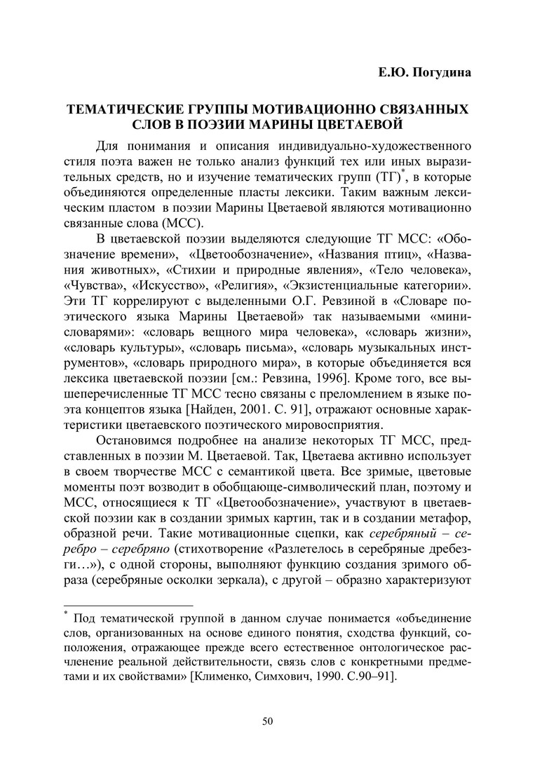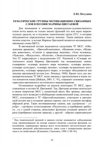 Библиографическое описание:Погудина, Евгения Юрьевна. Тематические группы мотивационно связанных слов в поэзии Марины Цветаевой / Е. Ю. Погудина. - Текст : непосредственный // Лингвистический ежегодник Сибири. - 2003. - Вып. 4/5. - С. 50-55. - Библиогр. в конце ст. - ISSN 1817-1222.