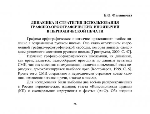Библиографическое описание:Филинкова, Елена Олеговна. Динамика и стратегия использования графико-орфографических иноязычий в периодической печати / Е. О. Филинкова. - Текст : непосредственный // Лингвистический ежегодник Сибири. - 2003. - Вып. 4/5. - С. 26-35. - Библиогр. в конце ст. - ISSN 1817-1222.