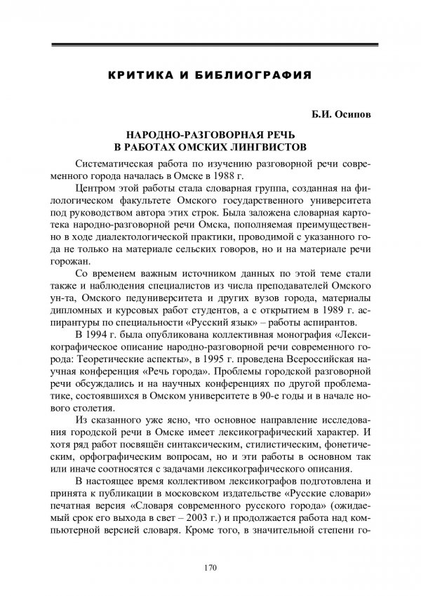Библиографическое описание:Осипов, Борис Иванович. Народно-разговорная речь в работах омских лингвистов : библиография / Б. И. Осипов. - Текст : непосредственный // Лингвистический ежегодник Сибири. - 2003. - Вып. 4/5. - С. 170-190. - ISSN 1817-1222.