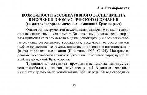 Библиографическое описание:Стамбровская, Анна Алексеевна. Возможности ассоциативного эксперимента в изучении ономастического сознания (на материале эргономических номинаций Красноярска) / А. А. Стамбровская. - Текст : непосредственный // Лингвистический ежегодник Сибири. - 2004. - Вып. 6. - С. 193-196. - Библиогр. в конце ст. - ISSN 1817-1222.