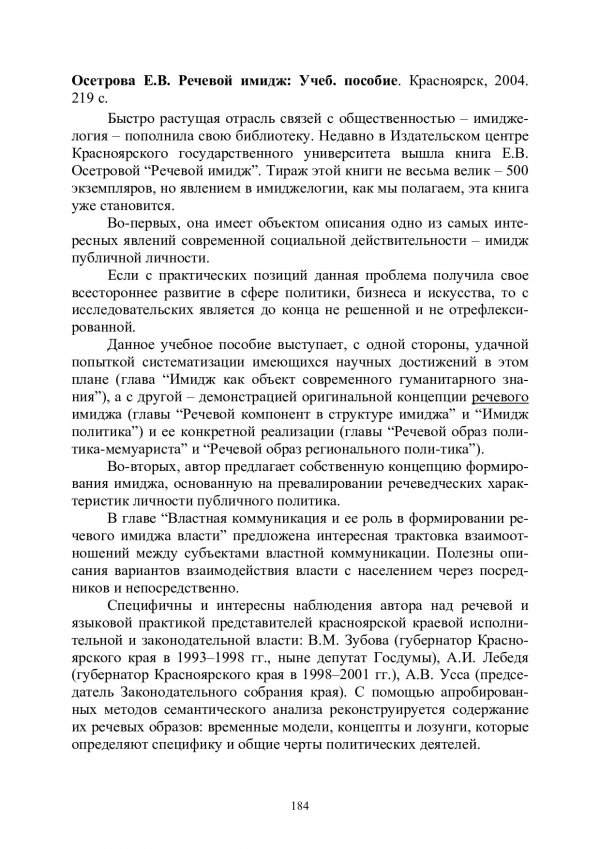 Библиографическое описание:Михайлов, Алексей Валерианович. [Рецензия] / А. В. Михайлов, А. А. Иоффе. - Текст : непосредственный // Лингвистический ежегодник Сибири. - 2005. - Вып. 7. - С. 184-186. - Рец. на кн.: Речевой имидж: учебное пособие / Е. В. Осетрова. Красноярск, 2004. 219 с. - ISSN 1817-1222.