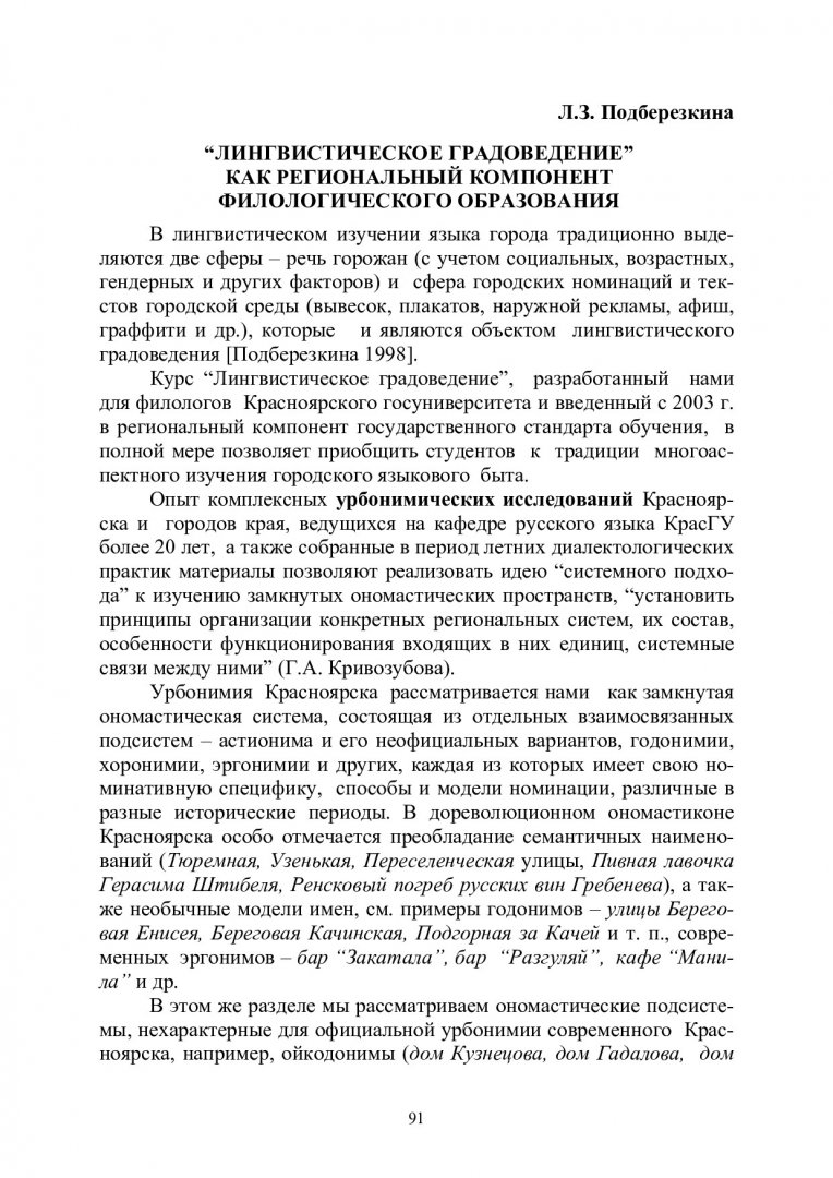 Библиографическое описание:Подберезкина, Лилия Зуфаровна. "Лингвистическое градоведение" как региональный компонент филологического образования / Л. З. Подберезкина. - Текст : непосредственный // Лингвистический ежегодник Сибири. - 2005. - Вып. 7. - С. 91-98. - Библиогр. в конце ст. - ISSN 1817-1222.
