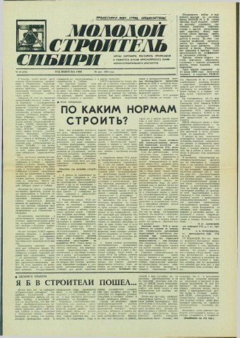 Библиографическое описание:Молодой строитель Сибири : газета/ Красноярский инженерно-строительный институт. - Красноярск : КИСИ, 1986 - - [1992] 1989г. N 19 (140) (26 мая)