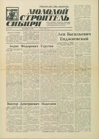 Библиографическое описание:Молодой строитель Сибири : газета/ Красноярский инженерно-строительный институт. - Красноярск : КИСИ, 1986 - - [1992] 1989г. N 21 (142) (9 июня)