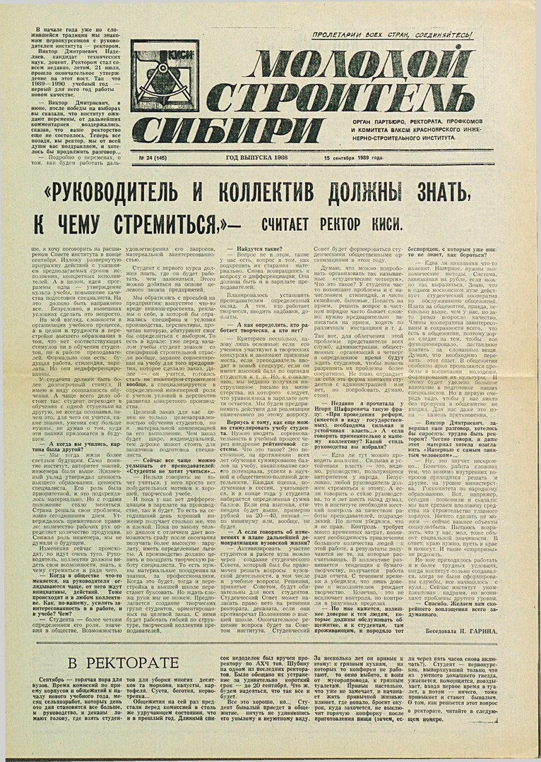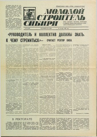 Библиографическое описание:Молодой строитель Сибири : газета/ Красноярский инженерно-строительный институт. - Красноярск : КИСИ, 1986 - - [1992] 1989г. N 24 (145) (15 сентября)