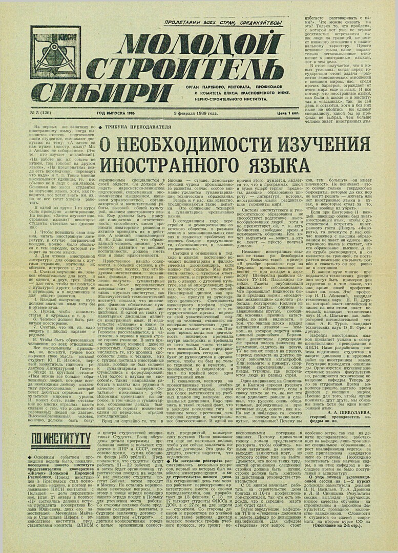 Библиографическое описание:Молодой строитель Сибири : газета/ Красноярский инженерно-строительный институт. - Красноярск : КИСИ, 1986 - - [1992] 1989г. N 5 (126) (3 февраля)