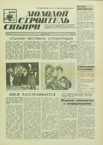 Библиографическое описание:Молодой строитель Сибири : газета/ Красноярский инженерно-строительный институт. - Красноярск : КИСИ, 1986 - - [1992] 1990г. N 11 (30 мая)