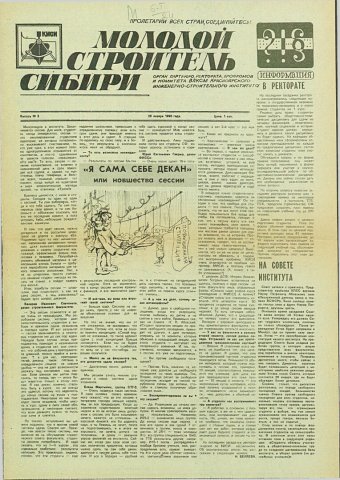 Библиографическое описание:Молодой строитель Сибири : газета/ Красноярский инженерно-строительный институт. - Красноярск : КИСИ, 1986 - - [1992] 1990г. N 3 (26 января)