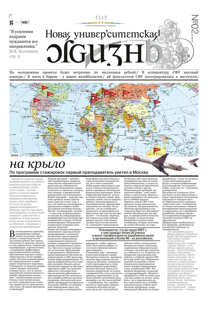 Новая университетская жизнь : газета/ Сиб. федер. ун-т. - Красноярск, 2007 - . - ISSN 2222-5560 2007г. N 2 (13 сентября) Полный текст ( 2.6 Мб; PDF). Ресурс свободного доступа