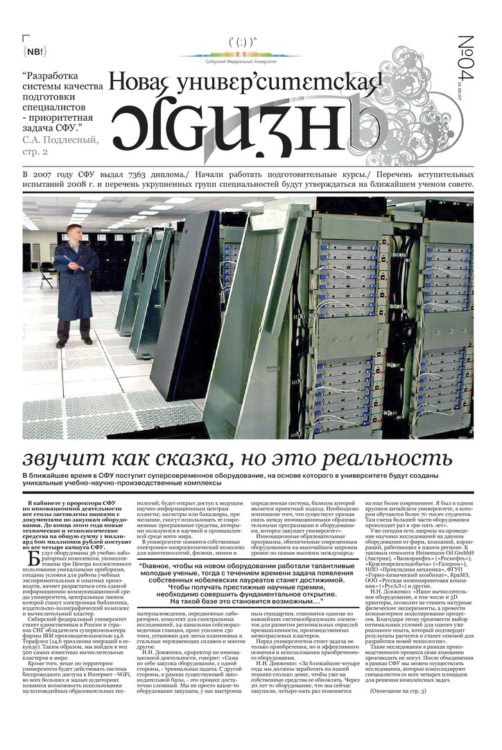 Новая университетская жизнь : газета/ Сиб. федер. ун-т. - Красноярск, 2007 - . - ISSN 2222-5560 2007г. N 4 (11 октября) Полный текст ( 1.9 Мб; PDF). Ресурс свободного доступа