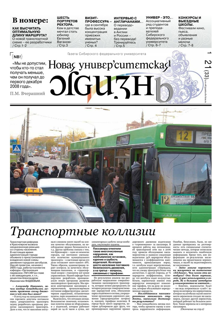 Новая университетская жизнь : газета/ Сиб. федер. ун-т. - Красноярск, 2007 - . - ISSN 2222-5560 2008г. N 21 (33) (9 октября) Полный текст ( 0.8 Мб; PDF). Ресурс свободного доступа